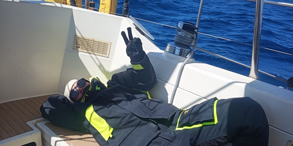 Nous éprouvons le Nos Limites, toujours efficace à la voile, surtout par gros temps et nous avons eu la chance d’avoir des conditions météo très favorables la plupart du temps.