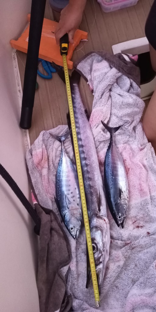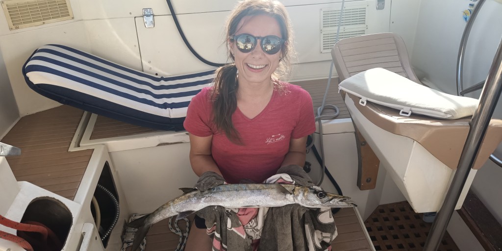 Afin de ne pas devenir ce qu’on appelle un « boat potatoe », c’est à dire un adepte de la bonne chair et des boissons trop caloriques pour être honnêtes, nous avons maintenu notre alimentation essentiellement végétarienne (avec quelques poissons frais quand la Nature décide de nous en donner). Nous glânons les produits frais en abondance lorsque nous sommes à terre.