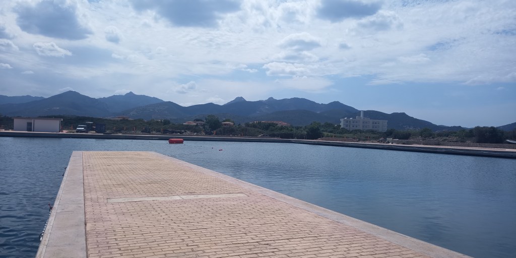Ce mouillage est bordé d’une eau cristalline, en face d’un village charmant et d’un petit port en cours de réaménagement (pour le moment vide), ce qui crée une atmosphère très étrange à l’arrivée. La météo en juin est magnifique, et la chaleur déjà très importante.