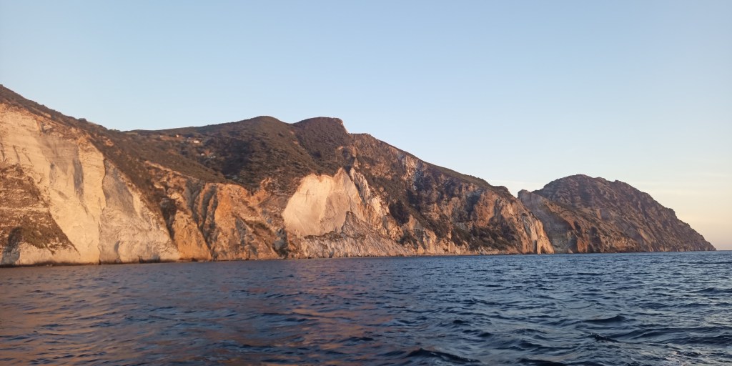 La magie opère vers 6 heures du matin : une côte rouge, l’île de Palmarola qui pointe et le vent qui se calme enfin, comme s’il n’était là que pour nous aider.