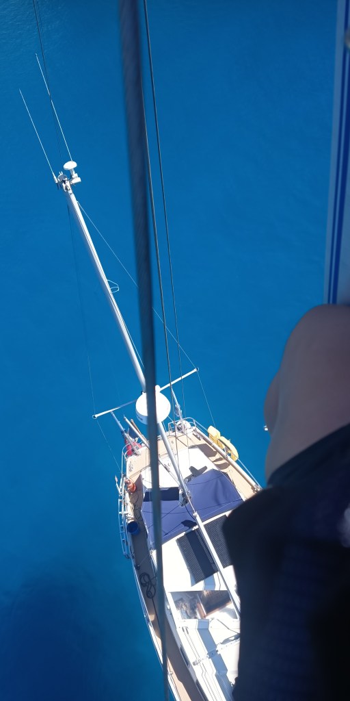 D’ailleurs, nous avons souvent besoin des ships puisque la drisse de notre trinquette a cassé sans explication, donc direction la tête de mât pour gérer la souci. Toutes les escales sont techniques !