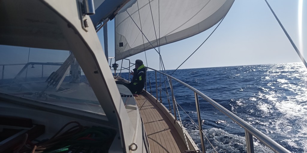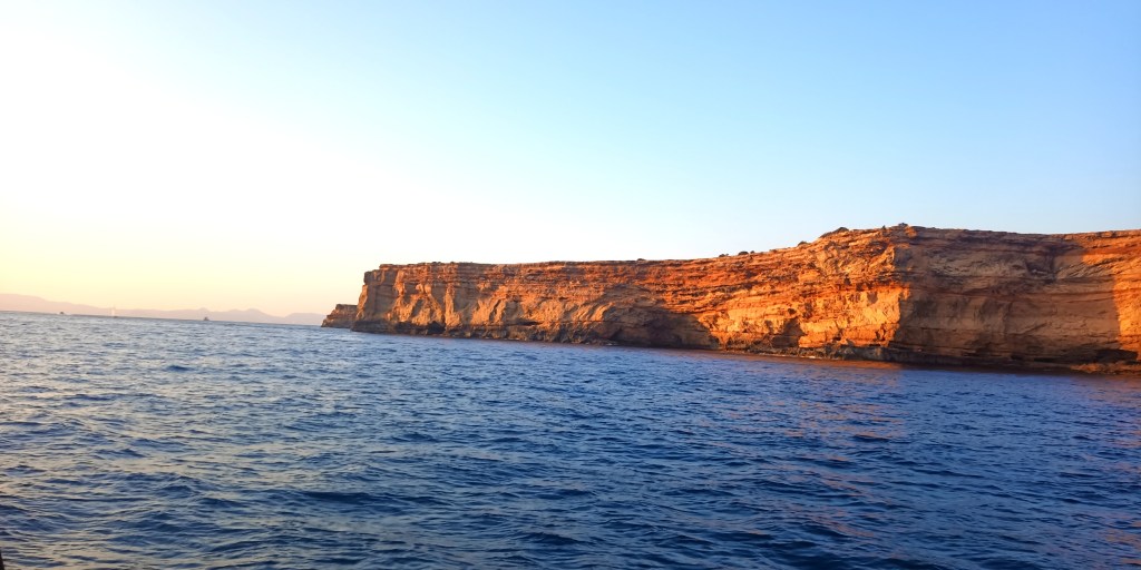 Le séjour se termine à Ibiza par la fameuse tempête du 14 août où nous allons essuyer au mouillage des rafales à 55 noeuds, le pire frayeur de notre vie (pour l’instant :)). Mais son récit fera l’objet d’un autre article. Epuisés par le tempête qui vient de se terminer, nous prenons le large en direction de la côte espagnole, avec la compagnie des dauphins sur la route.