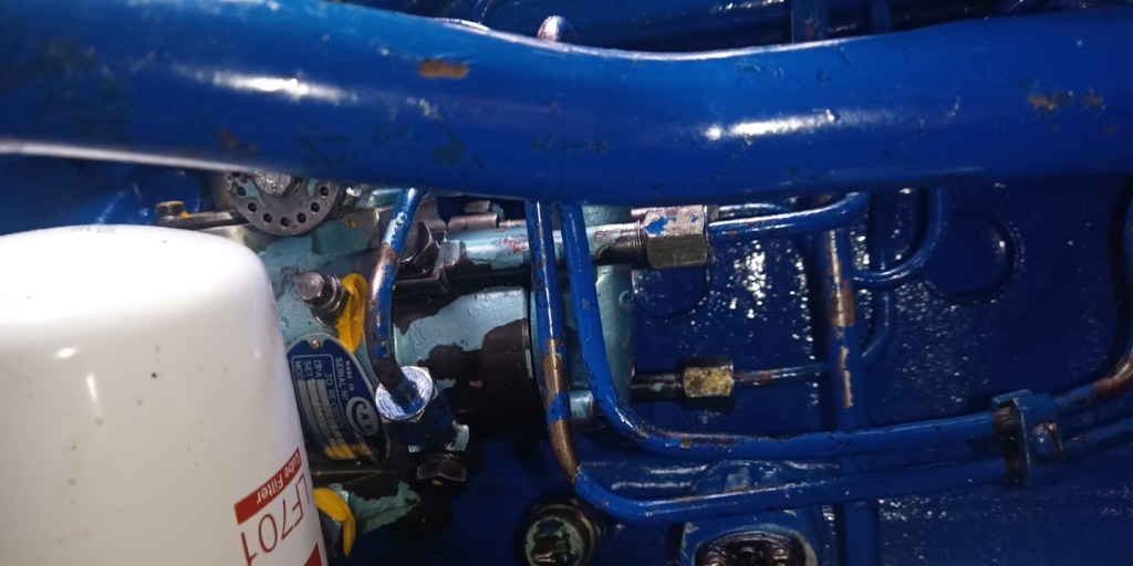 Une après midi de démontage, changement des joints, remontage, purge moteur etc, plus tard, le moteur démarre, miracle ! Mon coeur frissonne quand je pense aux accès quasi impossibles pour serrer les boulons (merci les petites mains), aux clés anglaises (moteur anglais oblige).