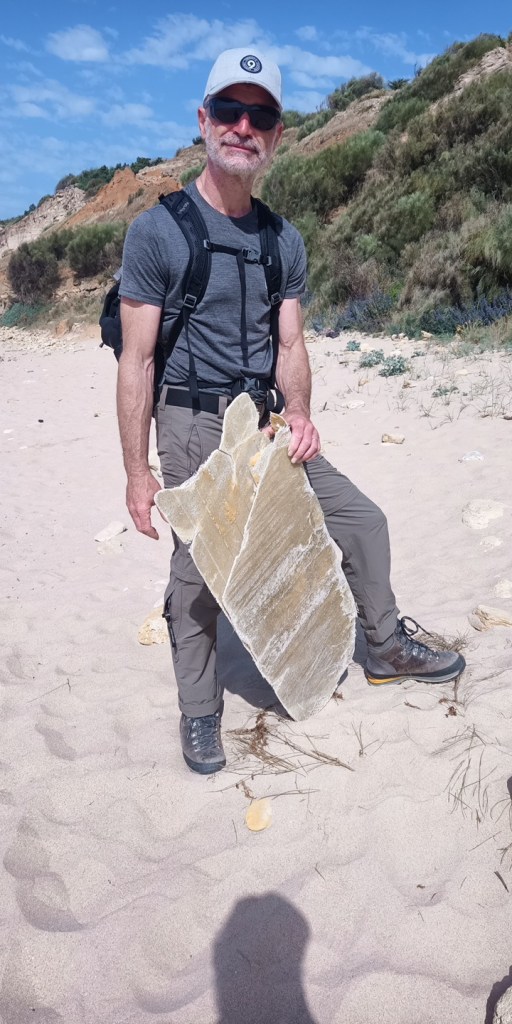 La promenade à la plage nous a donné envie d’une chasse aux coquillages ! Nous avons fait une belle prise : un safran ! A Barbate, les coquillages sont en fibre de verre !