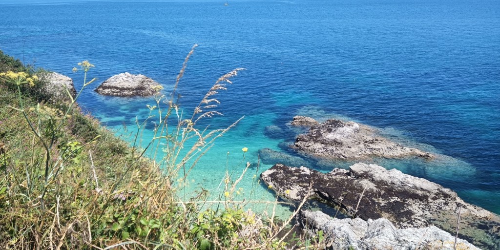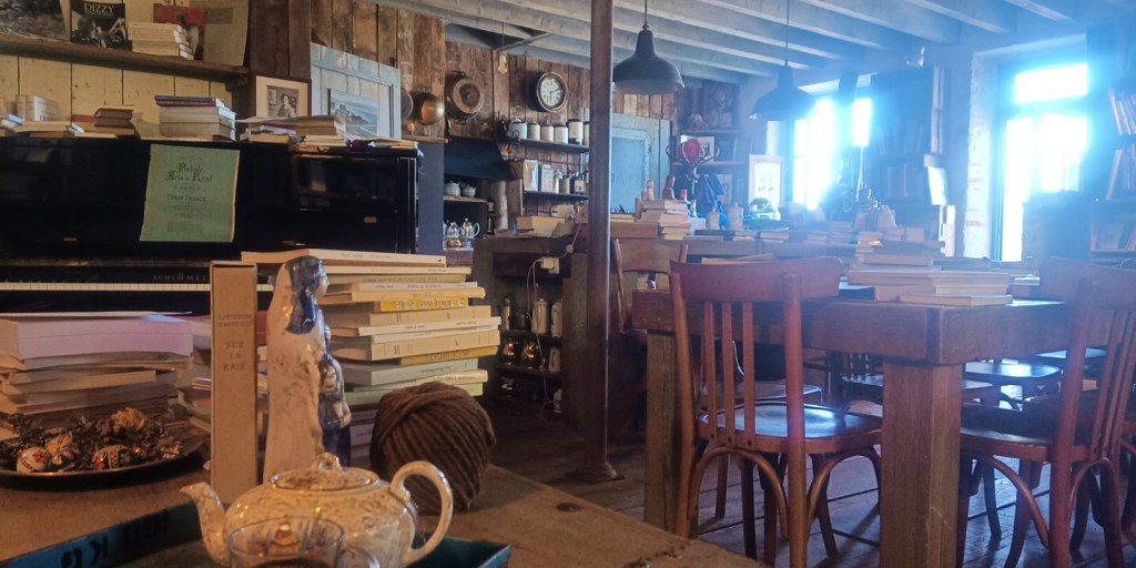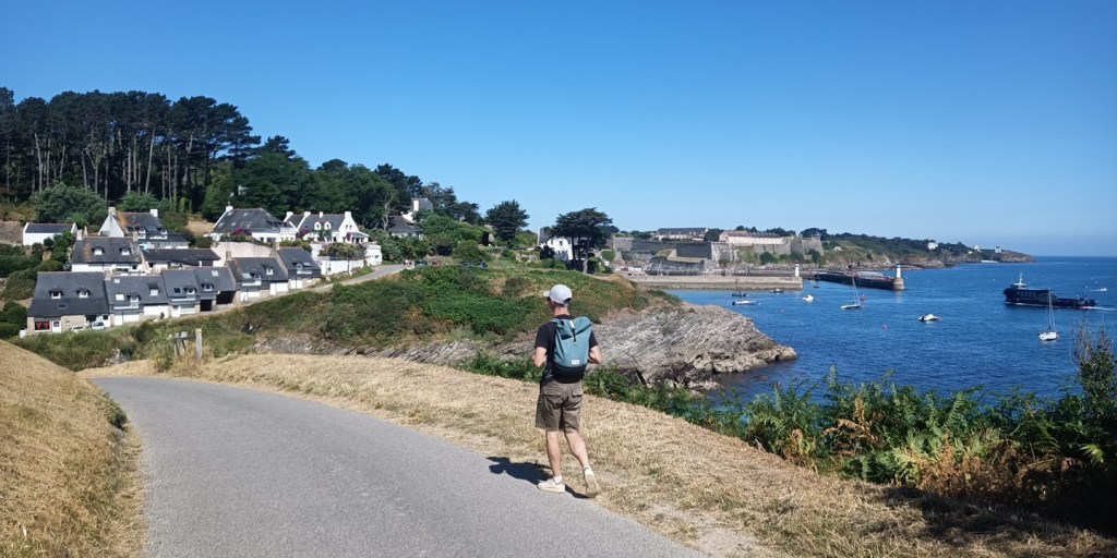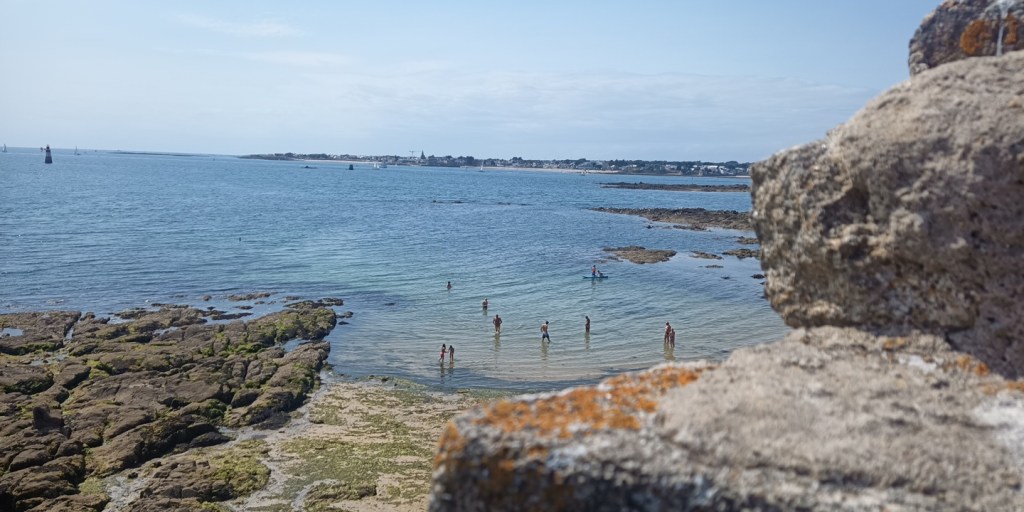 Une des habitantes rencontrée dans un café littéraire (une sorte de paradis sur terre où on peut lire et/ou acheter des bouquins, tout en dégustant une infusion du jardin) nous explique que Belle-Ile est très fréquentée, et que c’était plus tranquille lors de son installation 20 ans plus tôt. Nous avons dû rencontrer 20 personnes sur le trajet de la plage à la ville, disons que, question affluence, le ressenti est relatif :).