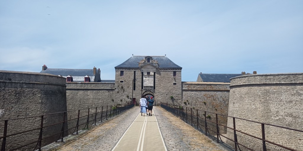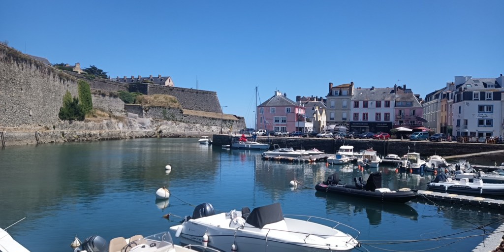 Malgré cela, la prudence et surtout l’absence d’envie de transformer le Sharki en crêpe flambée nous contrait à couper le moteur initialement puis voguer vers le port le plus proche. Nous avons jeté notre dévolu sur le charmant port de Port-Louis, juste à côté de Lorient, chargé d’histoire. Un gros chiffon plaqué contre l’injecteur, que nous changeons trois fois en 30 minutes et le bateau est à quai en sécurité ! Ouf ! Le temps d’attendre les pièces, nous décidons de profiter du lieu et nous n’allons pas être déçus.