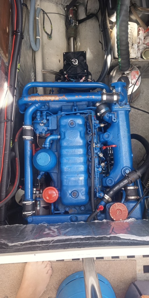 La cadre, ainsi que la météo sont idylliques, l’équipière vient de changer la poulie. Certes tout n’est pas encore parfait mais cela s’en rapproche. Après trois jours de repos, direction Groix. Nous avons décidé de mouiller sur la seule plage convexe d’Europe ! Incroyable. Au démarrage du moteur, au petit matin, une délicate odeur de gazole nous arrive au nez. Ouverture de la cale moteur, inspection, nous remarquons quelques gouttes de gazole fuyant du tuyau de l’injecteur numéro 3. Hop, un coup de clé pour resserrer. Imaginez à cet instant le ruisseau qui se transforme en torrent de gazole…