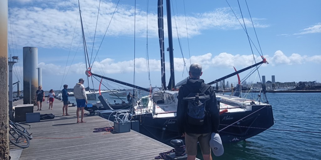 Vous vous souvenez sans doute que le Nos Limites était en train de s’élancer dans le Golfe de Gascogne au départ de la Corogne au dernier épisode. Vous, lecteur(trice), l’imaginez fendant les flots avec grâce et légèreté et vous aurez raison, en un sens. Les 10 tonnes fuselées de la bête pèsent lourdement sur la vague; et la grâce ne luit que dans l’oeil du capitaine mais passons la poésie !
