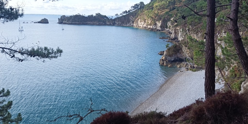 Chaussés de nos bottes de randonnée, nous arpentons le GR34 à la recherche des plages tant promises, interdites à toute présence humaine à cause de sur-fréquentation. Mais leur vision en vaut la peine. Sublime.