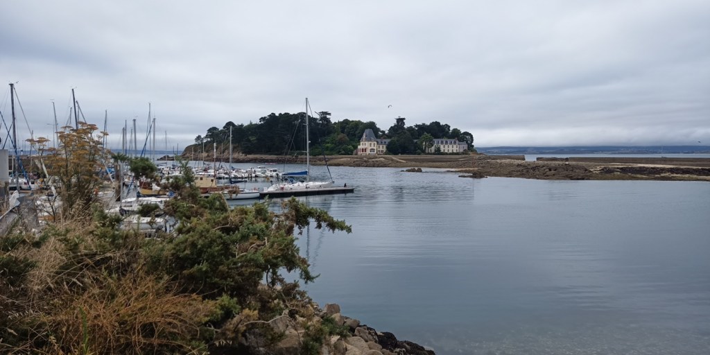 Au retour, nous avons la surprise de retrouver notre annexe attachée au ponton flottant, mais qui ne flotte plus du tout; disons que nous avons encore mal calculé la marée, nous contraignant à déplacer notre pneumatique pour la mettre à l’eau :). Avec beaucoup de tristesse, nous levons l’ancre en direction de Bénodet. Fabrice voulait voir Bénodet, il a vu Bénodet. Finalement, la zone n’était pas à la hauteur de nos fantasmes. Aucun charme d’apparence, du peu que nous en avons vu. Le temps nous a également manqué. Cette fois, c’est presque la bonne, nous allons au mouillage d’Audierne, en attente de la marée et du vent idéal pour le Raz de Sein.