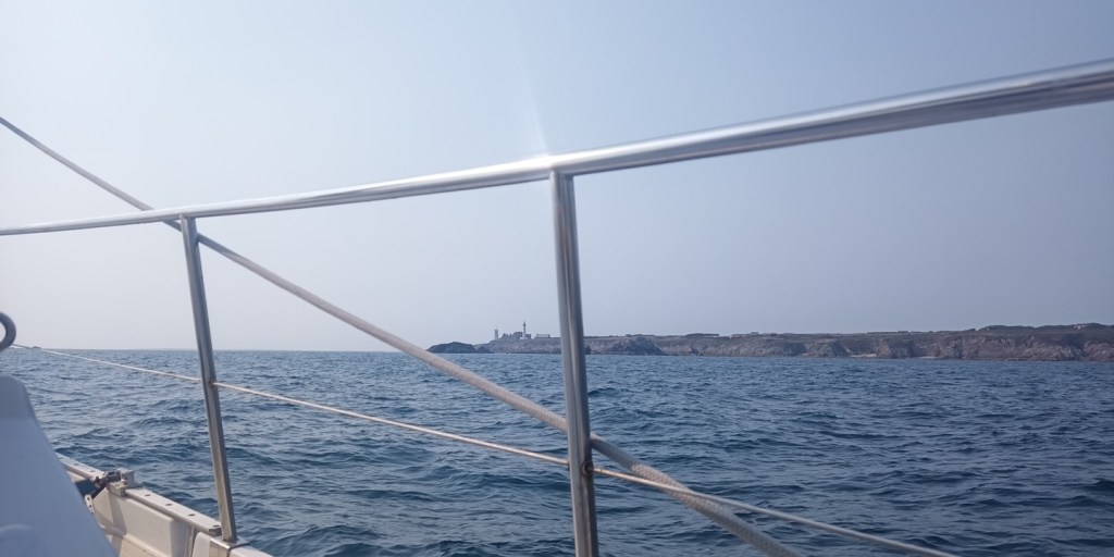 Voyons les instructions nautiques : Passer idéalement au moment de la marée montante, ah !! On vous passe la honte des débutants, mais le Perkins nous a fait passer le goulet à 6 noeuds sans difficulté. On a gardé un bout de toile pour garder la face, comme le voilier à côté de nous d’ailleurs (il ne nous a pas échappé qu’il avait également allumé son moteur).