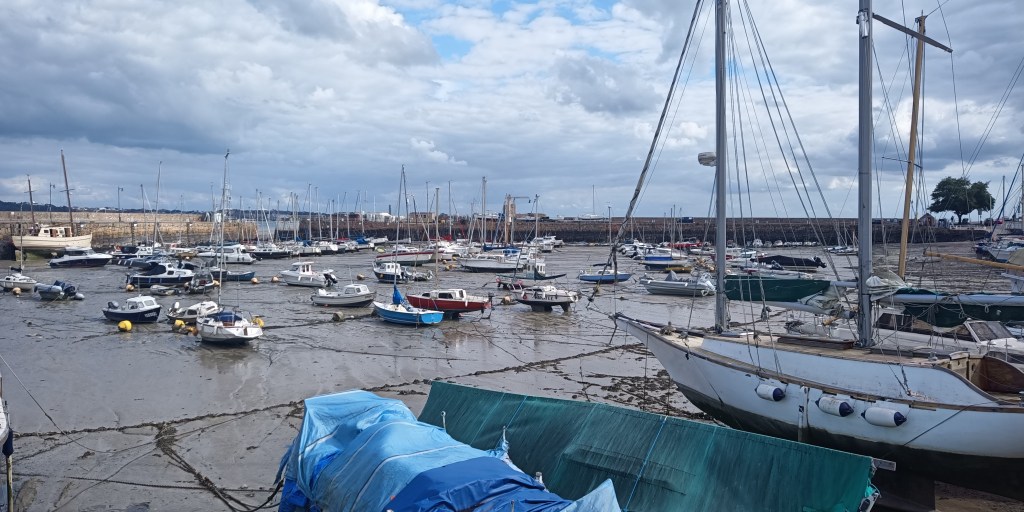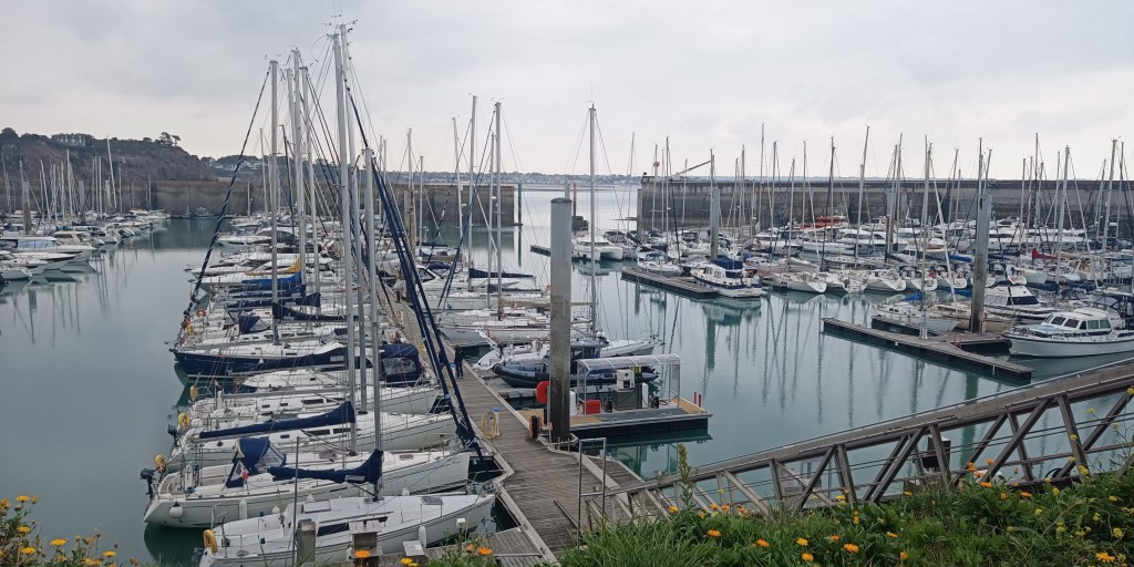 Une sueur froide nous saisit quand l’équipage se rend compte que le Nos Limites franchira la porte du port à 13h et non 12h, donc avec un marnage encore suffisant puisque la porte se ferme à 14H….La veille nous hésitions à partir une heure plus tard, lassés des levers un peu trop matinaux. Heureusement, l’arrivée se fera à une heure encore raisonnable et nous touchons le quai à 13h10 française ! Magnifique !