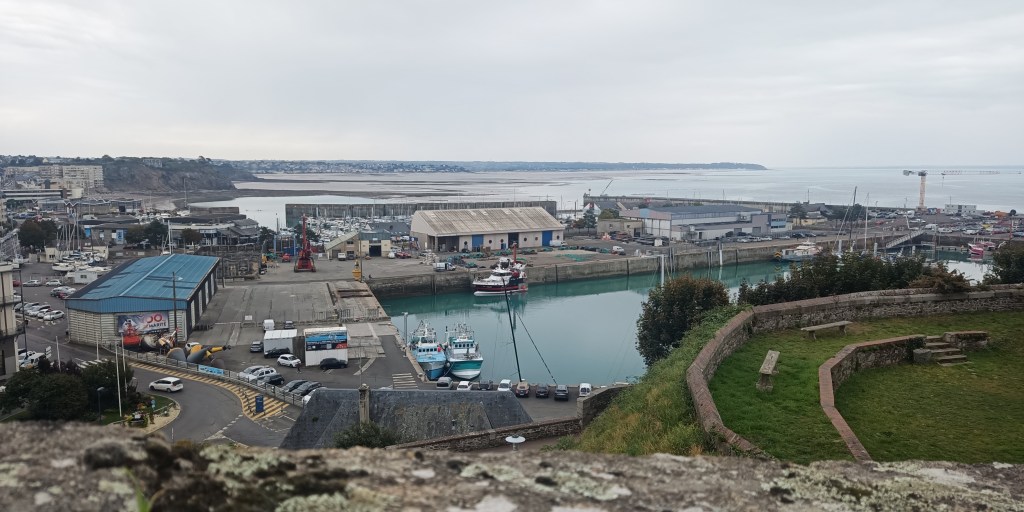 Le port de Granville est sympathique, la ville est très agréable, en particulier la haute ville qui nous toise dès l’arrivée. Ici, point de tourisme de masse étant donné la saison. A l’étale de marée basse, la Manche se retire, laissant le sable apparaitre dans une baie immense et enchanteresse. Bref, une ville extraordinaire que nous aurons l’occasion de découvrir, mais il ne faut pas trop le dire !